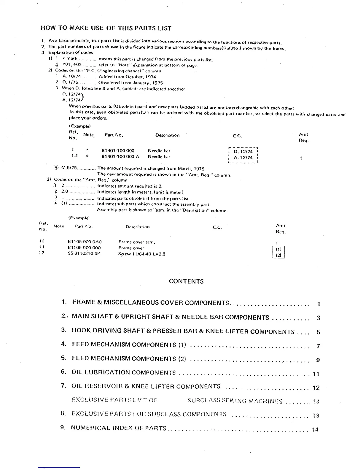 Consew DLS600 - How to Make Use of This Parts List