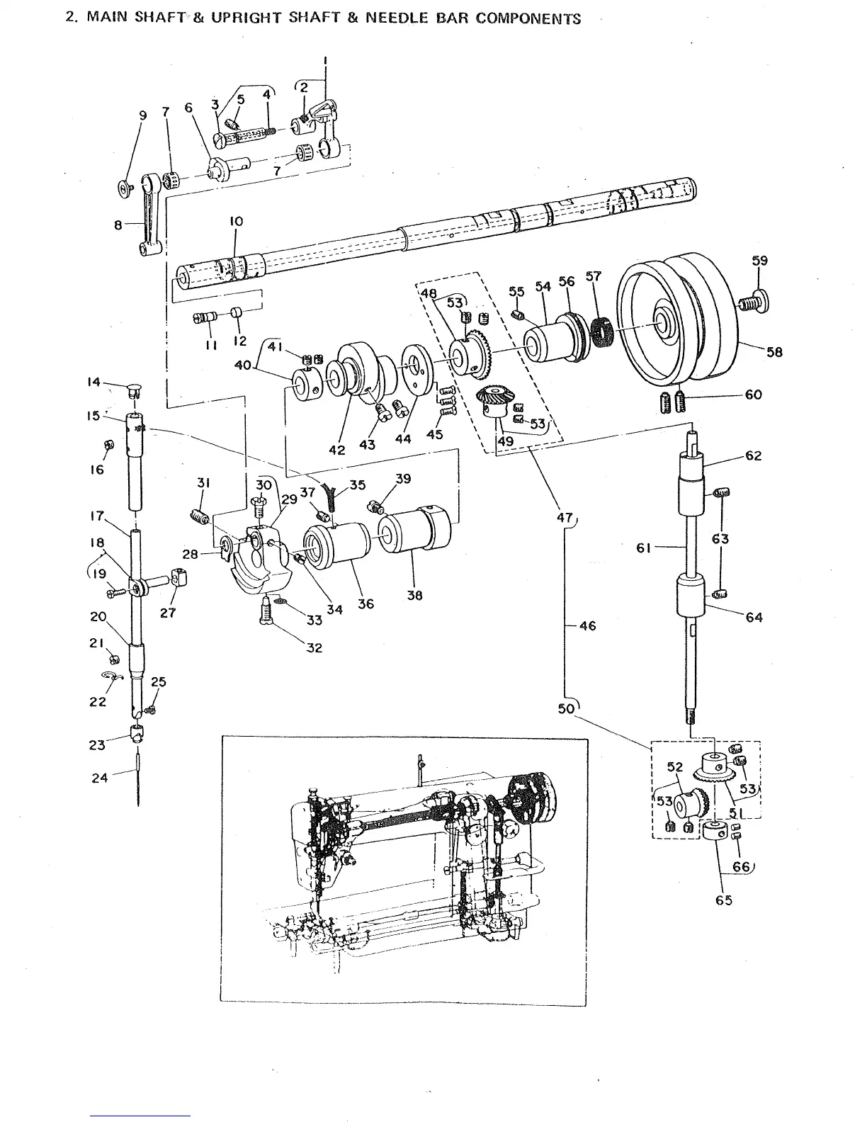 Consew DLS600 - 2. Main Shaft & Upright Shaft & Needle Bar Components