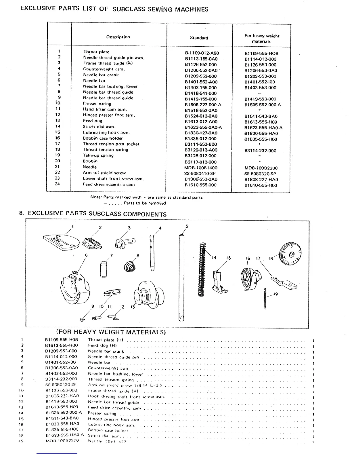 Consew DLS600 - Exclusive Parts List of Subclass Sewing Machines; Exclusive Parts Subclass Components