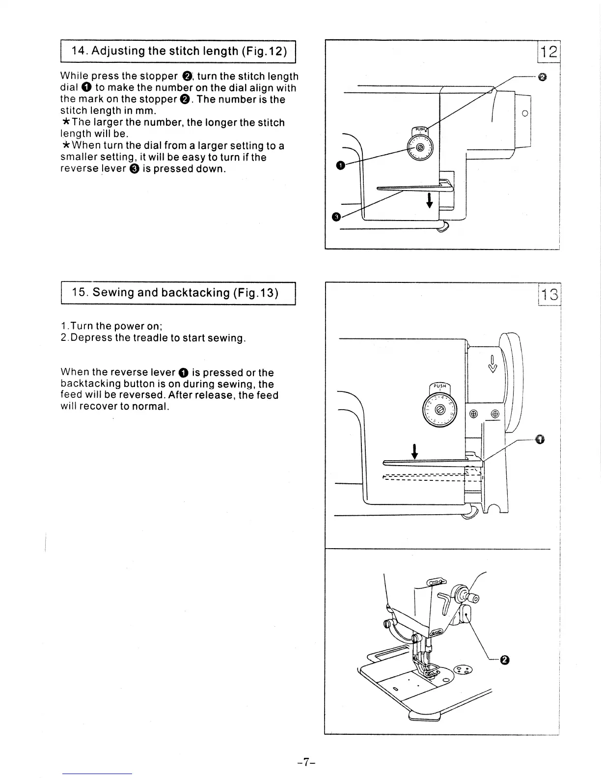 Consew P1206RB - 14. Adjusting the stitch length; 15. Sewing and backtacking