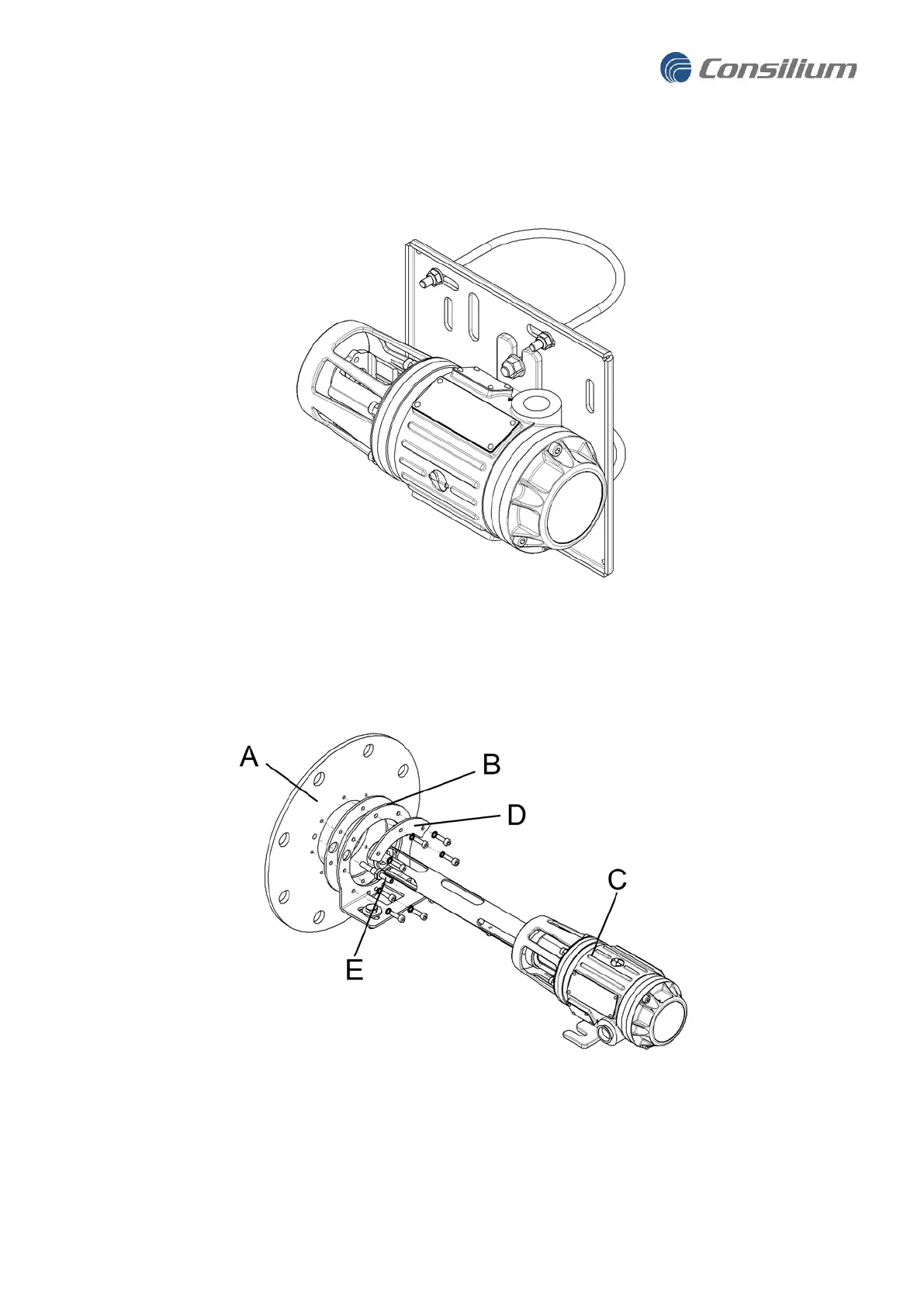 The mounting is done by fixing the flange (A) to the installation. Attach the