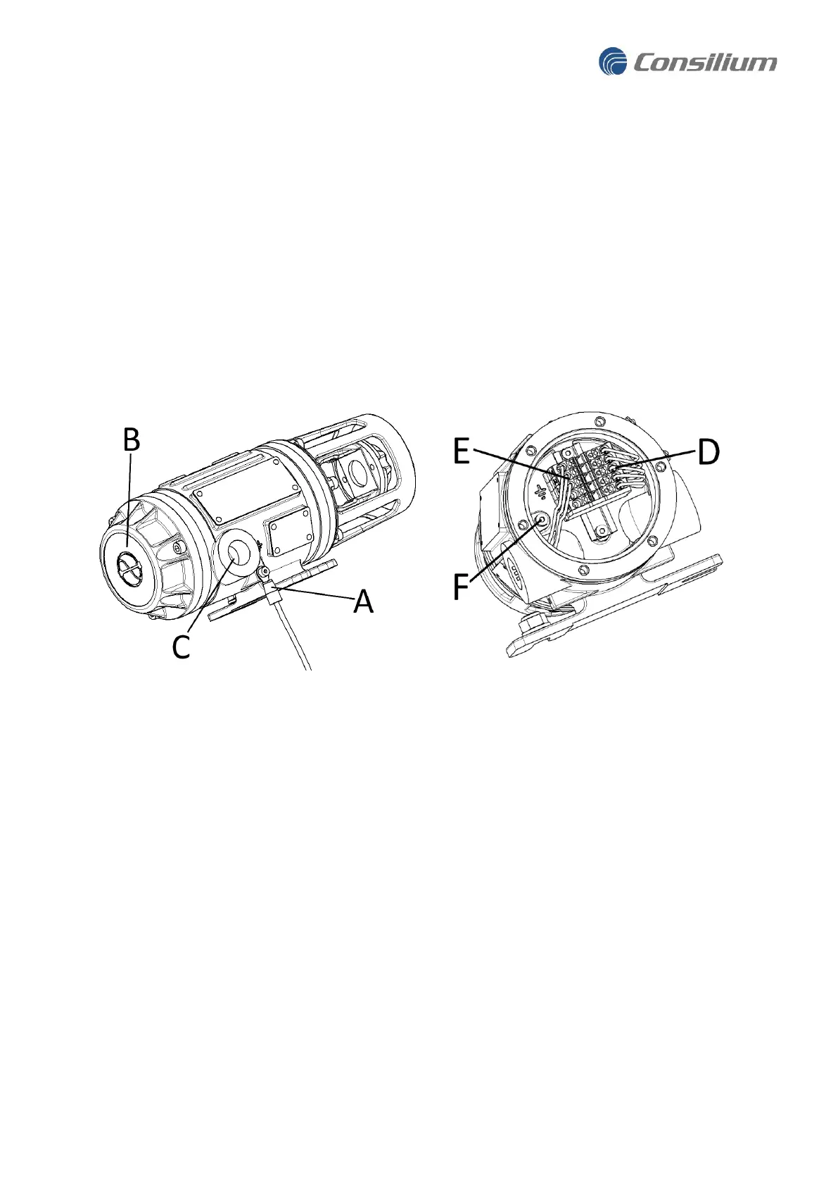 located inside the rear lid in point B, opened by unscrewing the three screws fixing it. M20 cable entries C on