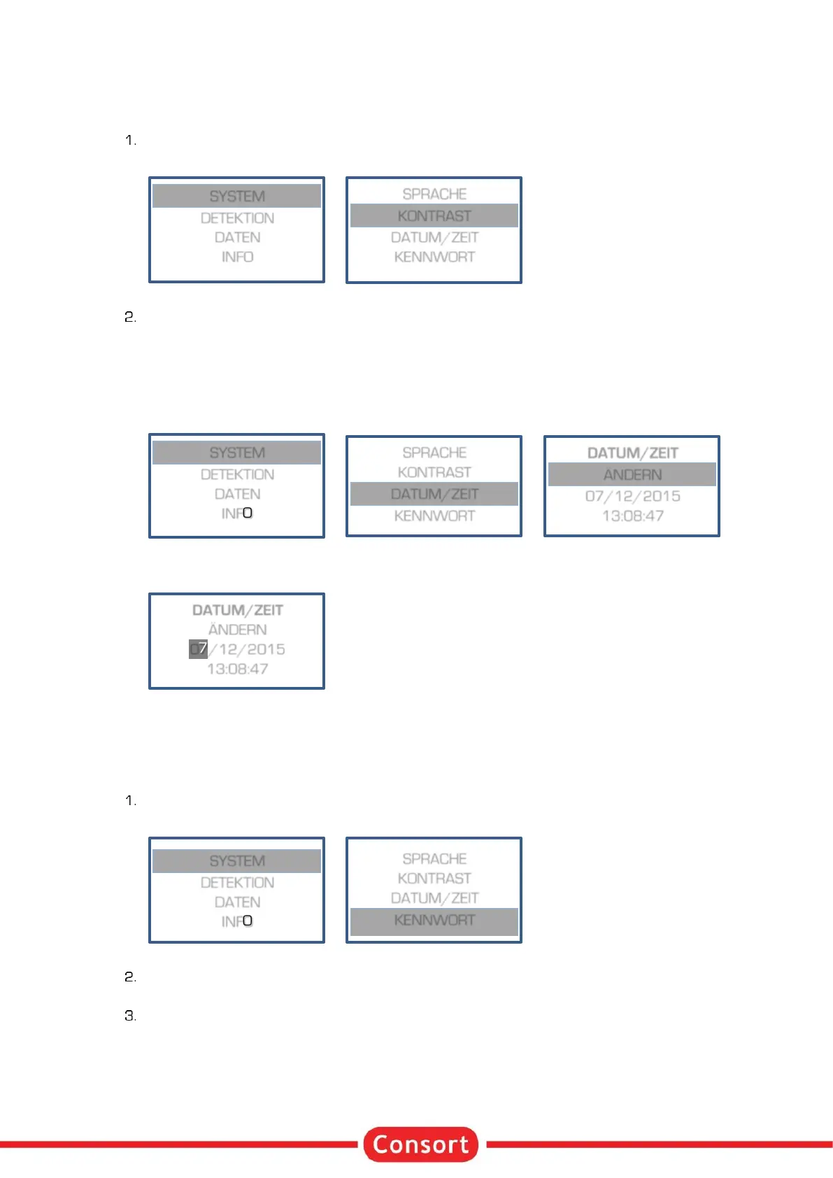 Passen Sie den Kontrast an und drücken Sie um zu bestätigen.