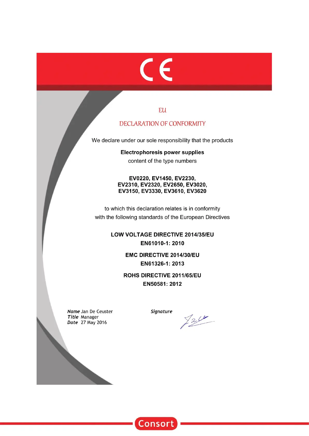 Consort EV1450 - Certificate - Certificaat - Zertifikate