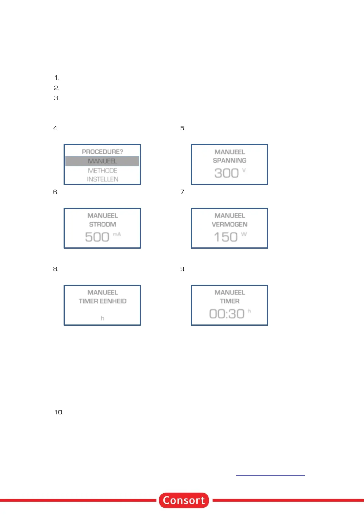 Manuele programmatie laat toe om spanning, stroom, vermogen en timer in te stellen voor een standaard