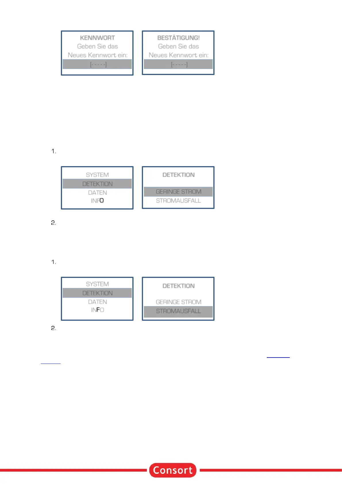 Wählen Sie DETEKTION um die Maßnahme bei der Detektion von Schwachstrom oder Stromausfall zu