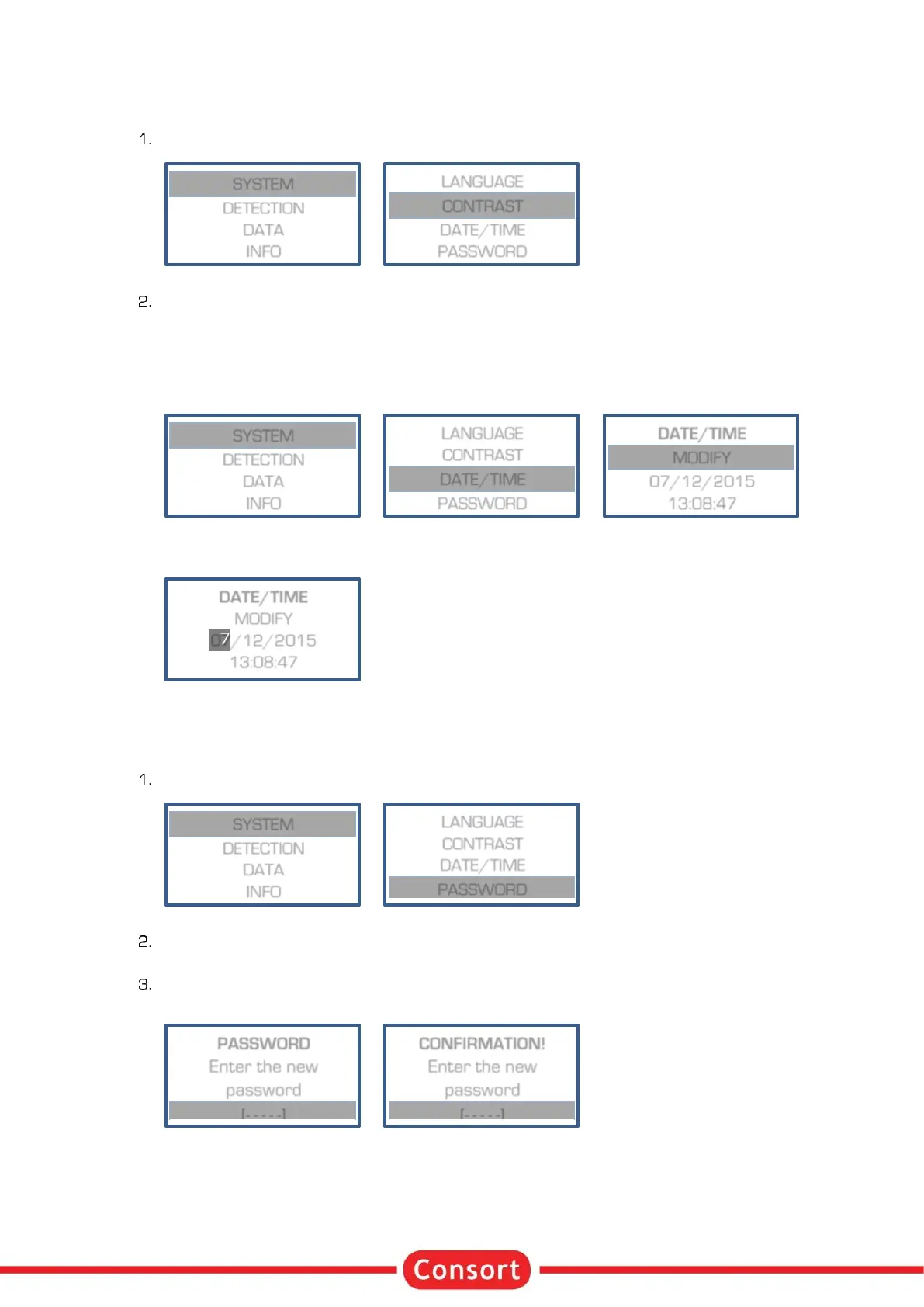 2. Set consecutively the date, month, year, hour, minute and seconds. Confirm each with ✓ or stop