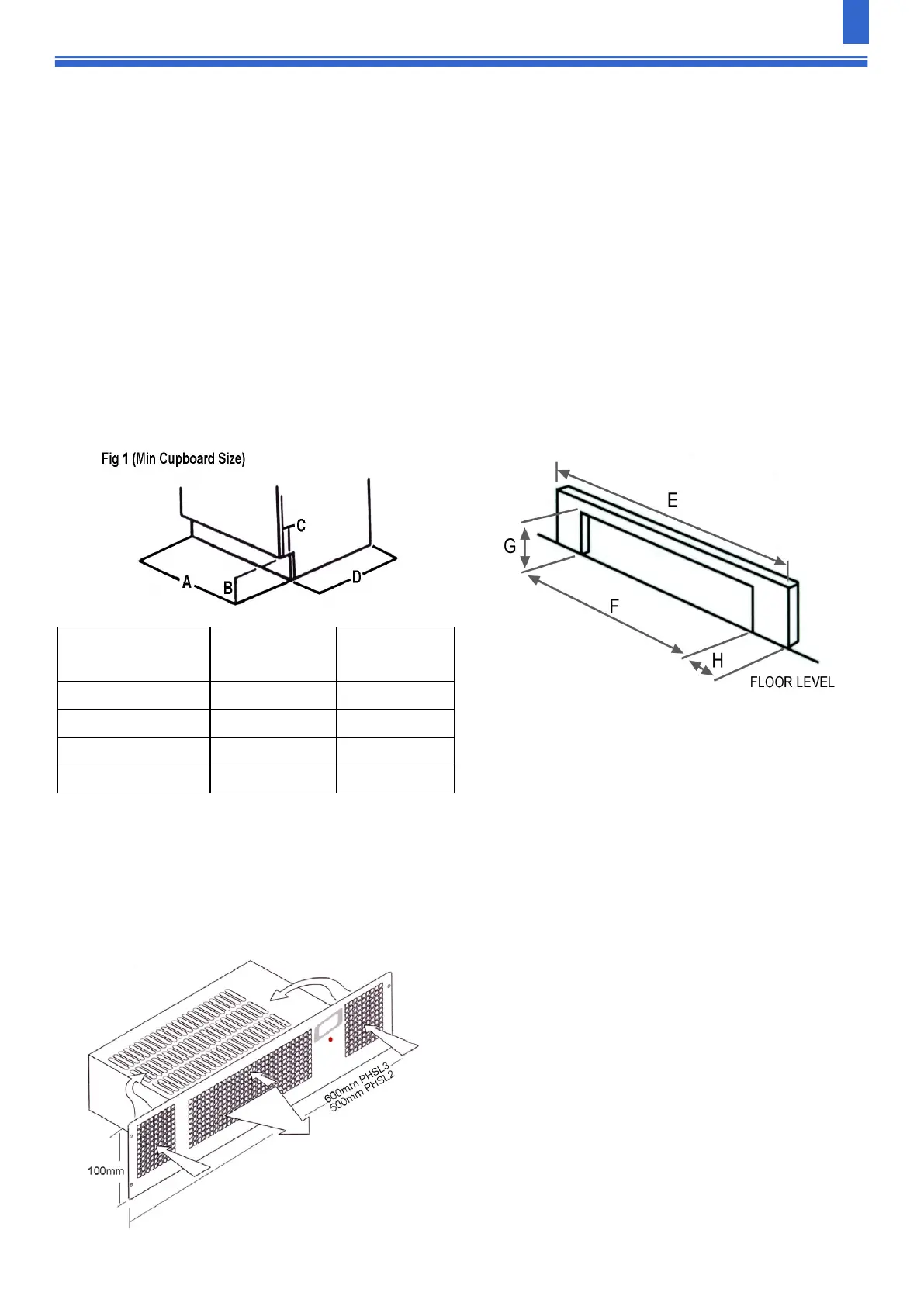 (PHSL3) wide by 100mm (min) high plinth. If the