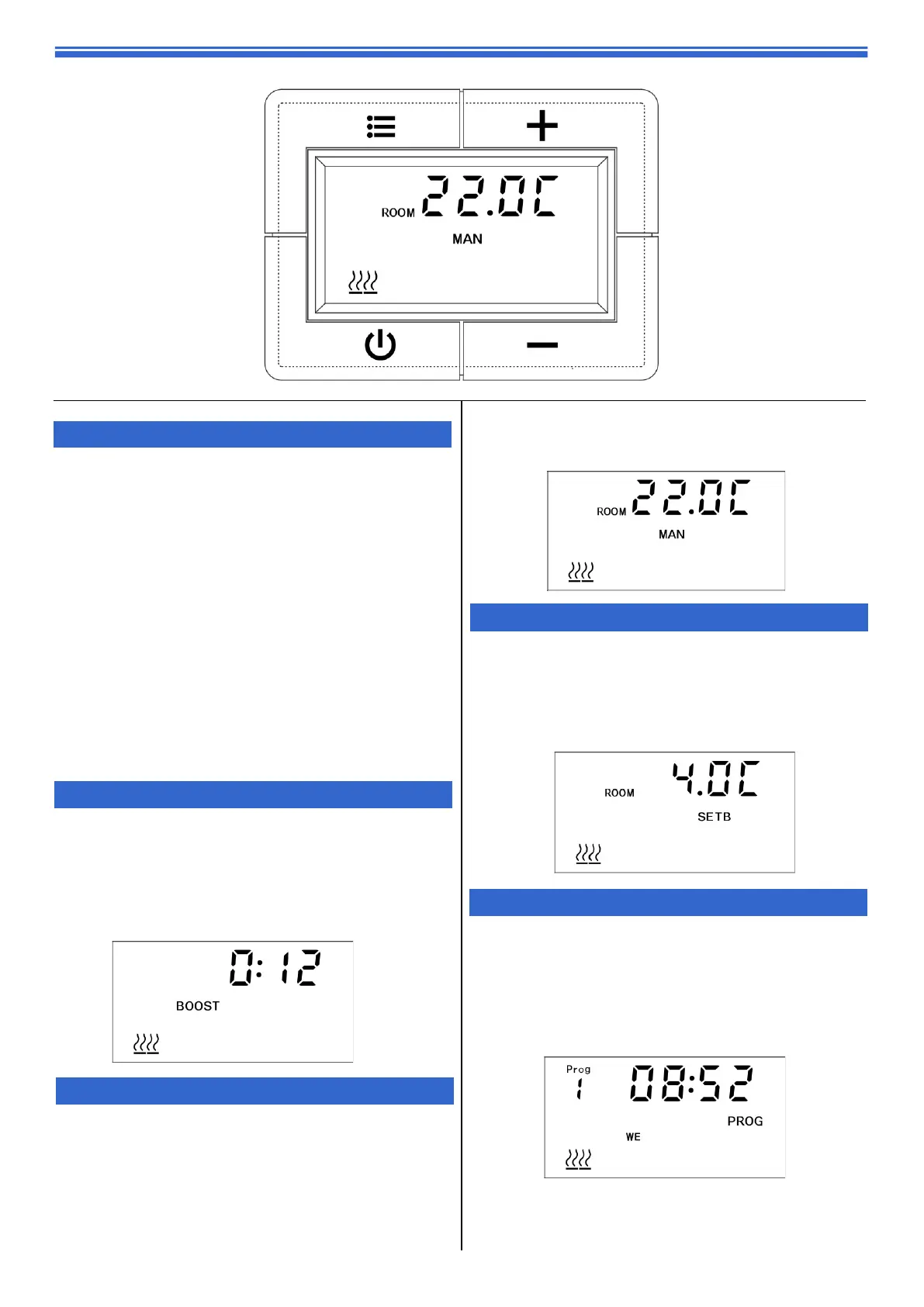 BOOST, MANUAL, SETB and PROG.