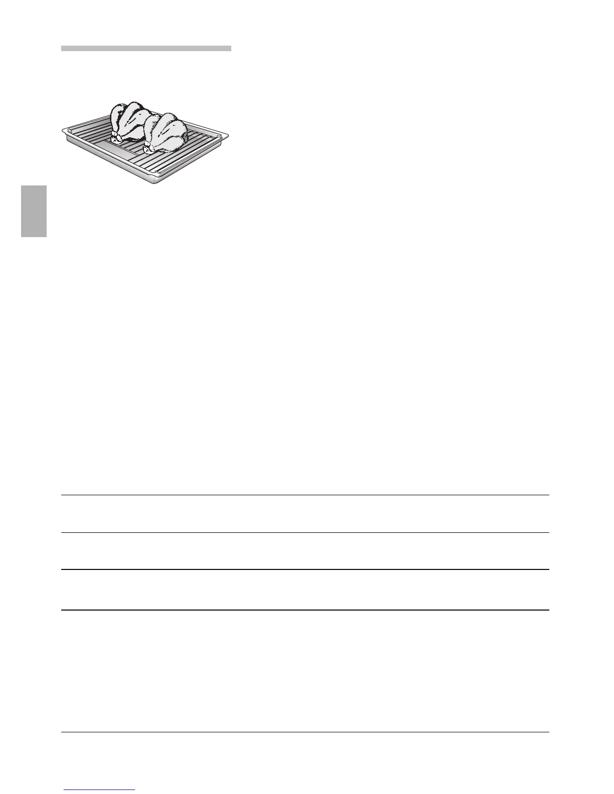 Whole chicken Approx. 1 kg Grille/ 200 – 210° C 2 150 – 160 min.