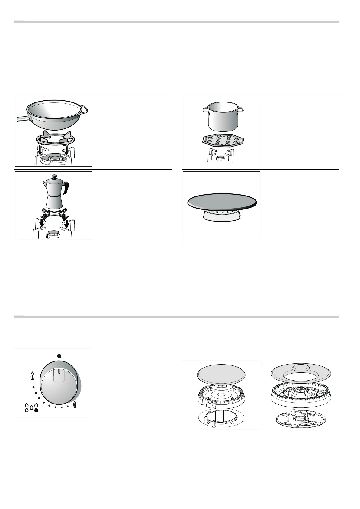 Hver betjeningsknap angiver den brænder, som den styrer. For at apparatet skal fungere korrekt, er det nødvendigt at sikre