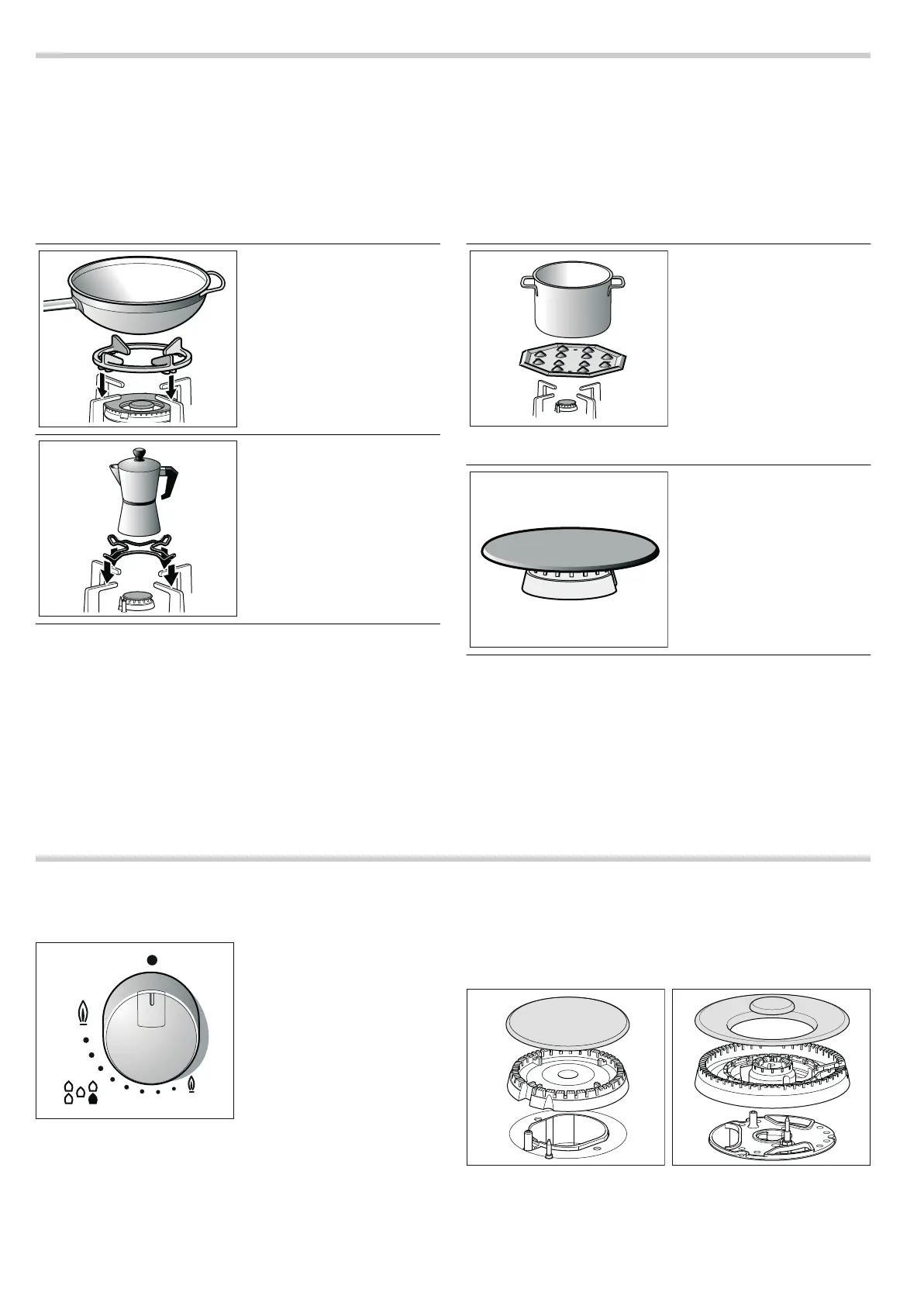 Każde pokrętło posiada oznaczenie palnika, który obsługuje. W celu zapewnienia prawidłowego działania urządzenia, należy