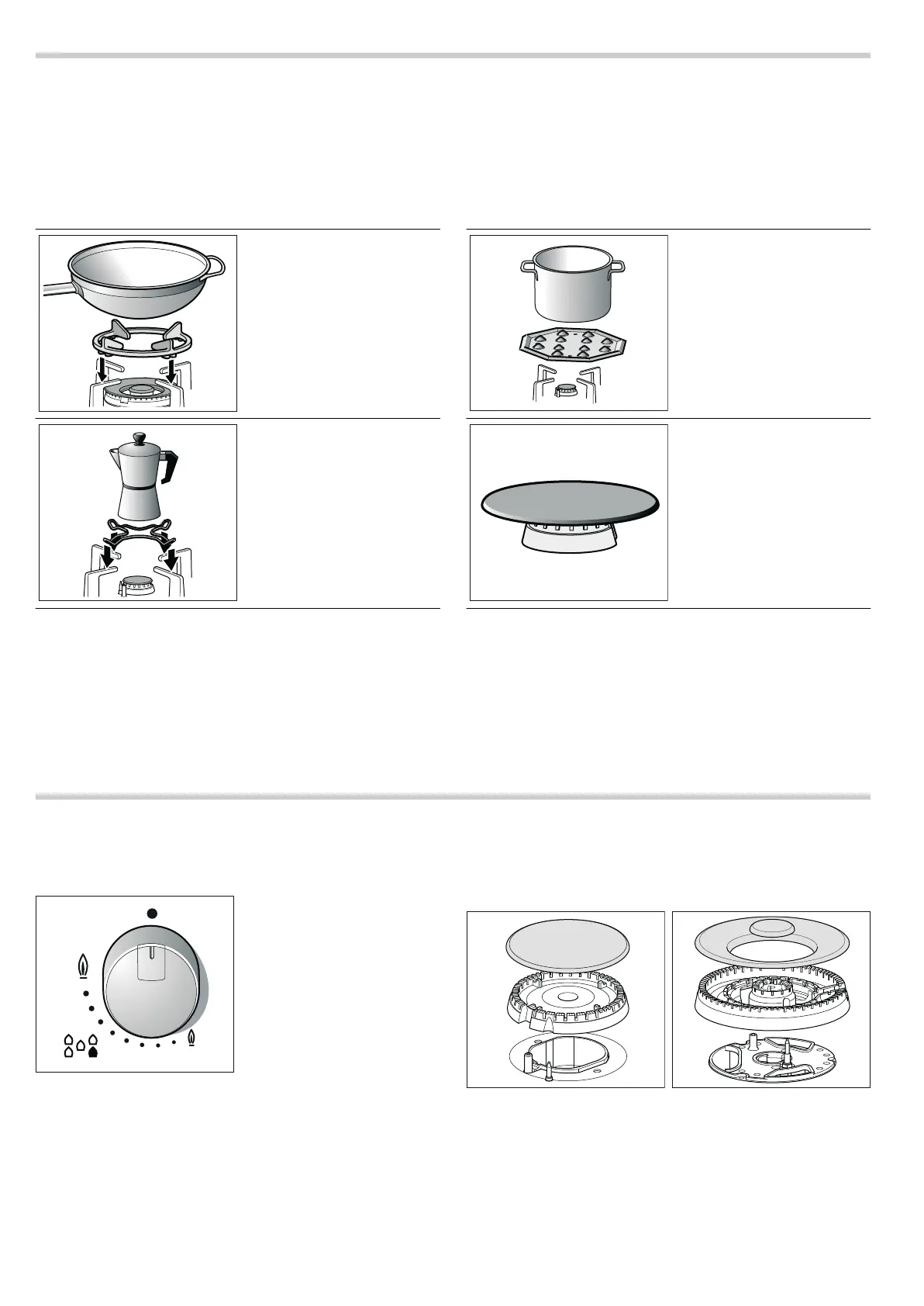 Följande tillbehör kan medfölja spishällen, beroende på modell.