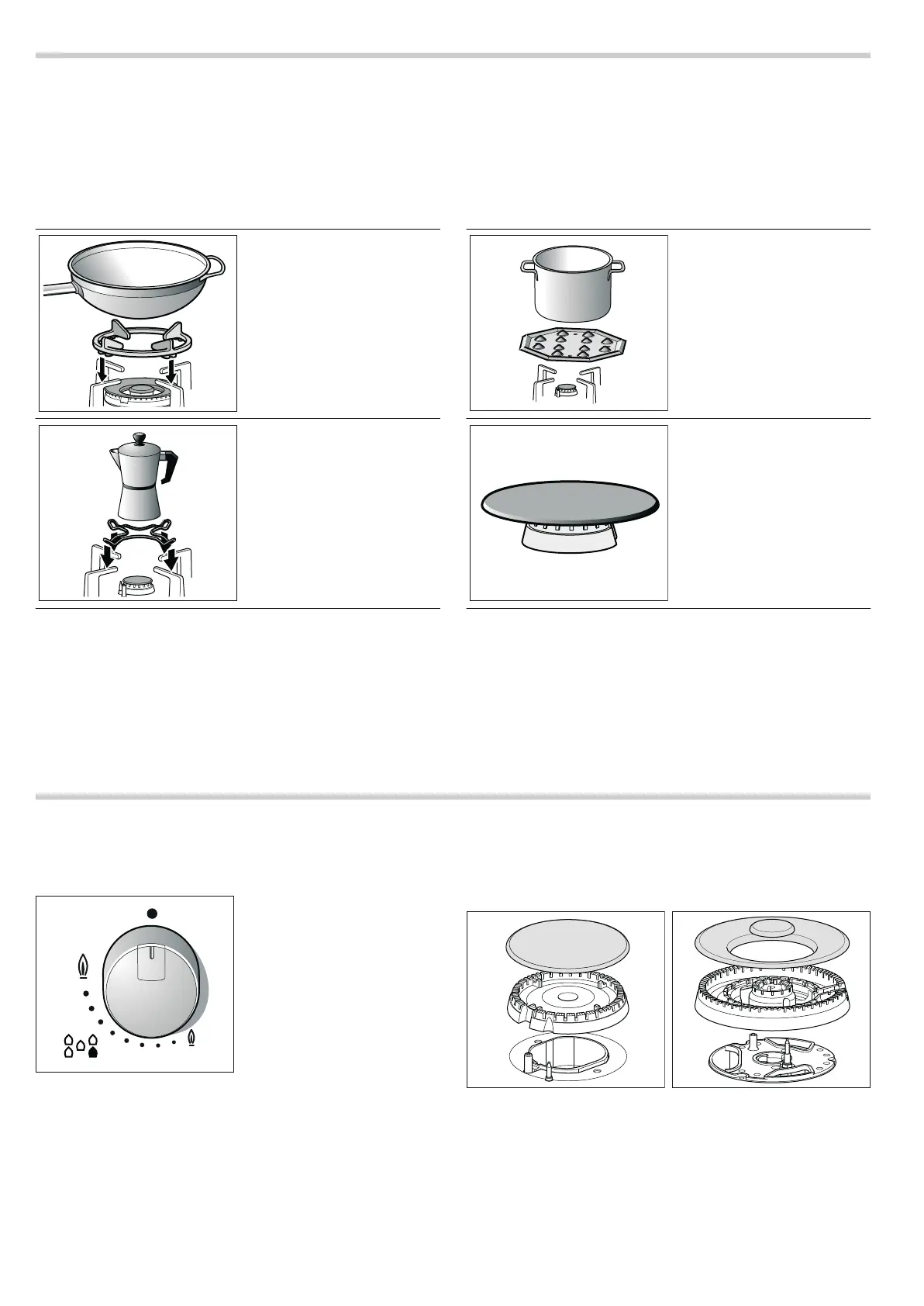 Modele göre pişirme tezgahı aşağıdaki aksesuarları içerebilir.