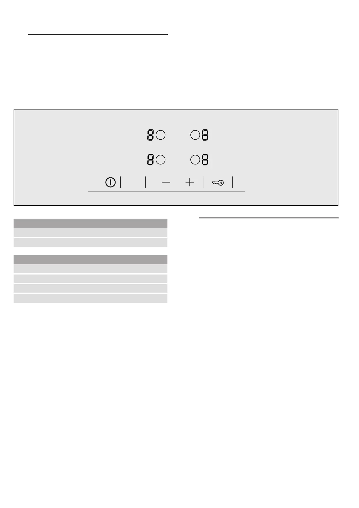 the ‹ displays light up. The hob is ready for use.