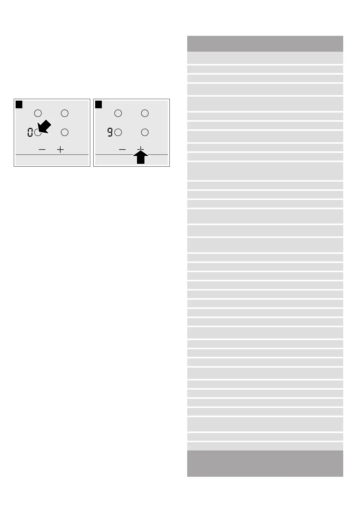 3. De kookstand wijzigen: het symbool + of - aanraken