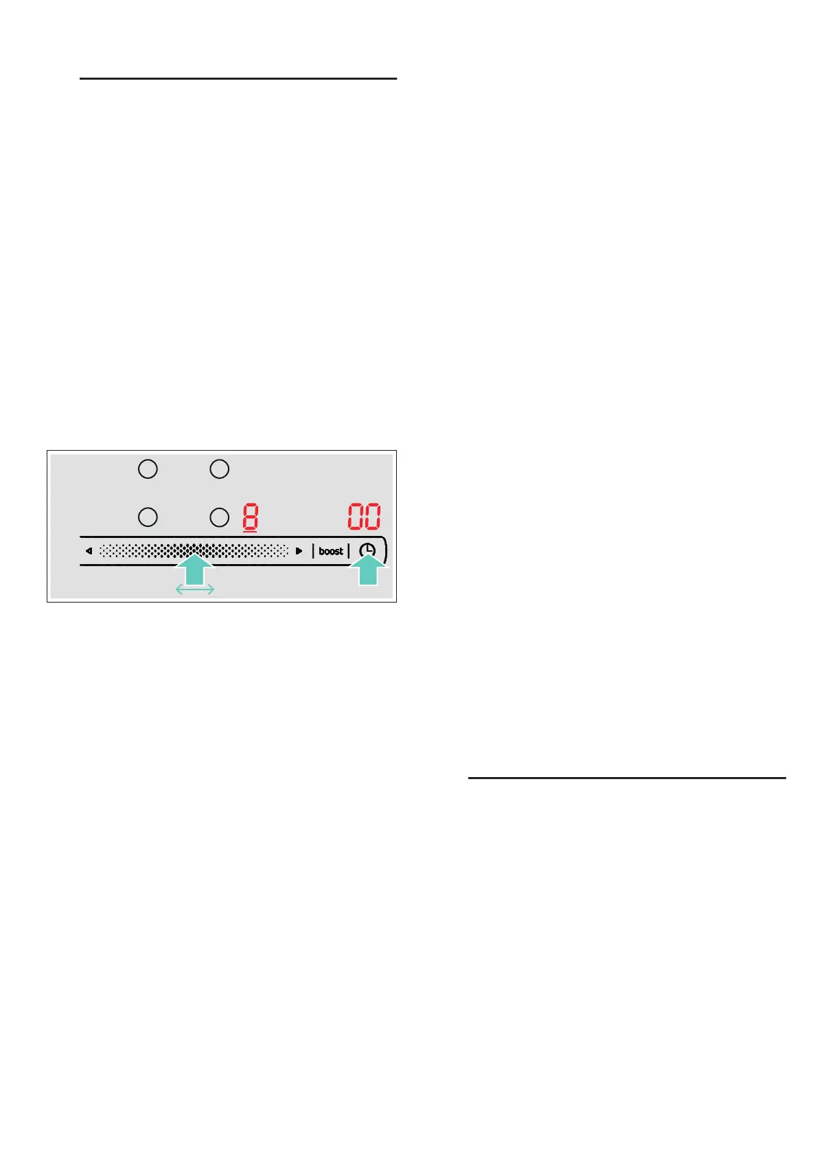 tijdsduur van de geselecteerde kookzone weergegeven.