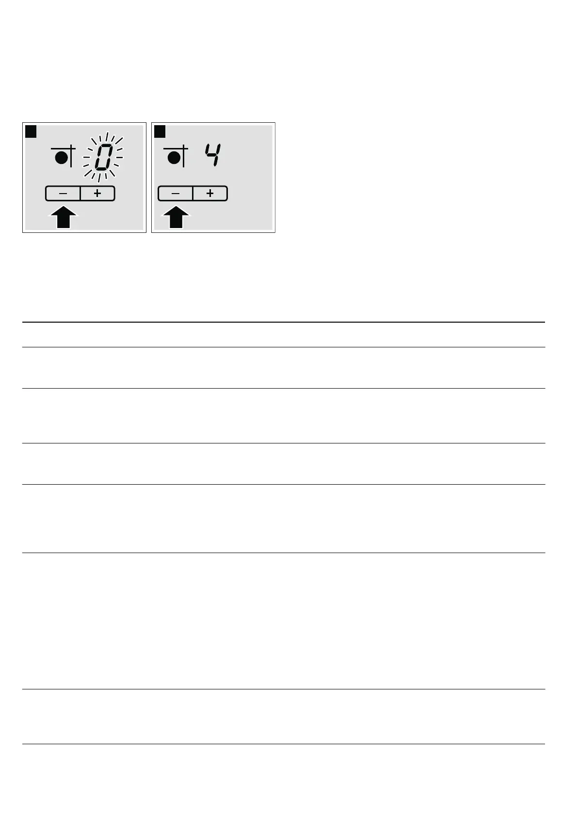 3. De kookstand wijzigen: het symbool + of - aanraken tot de