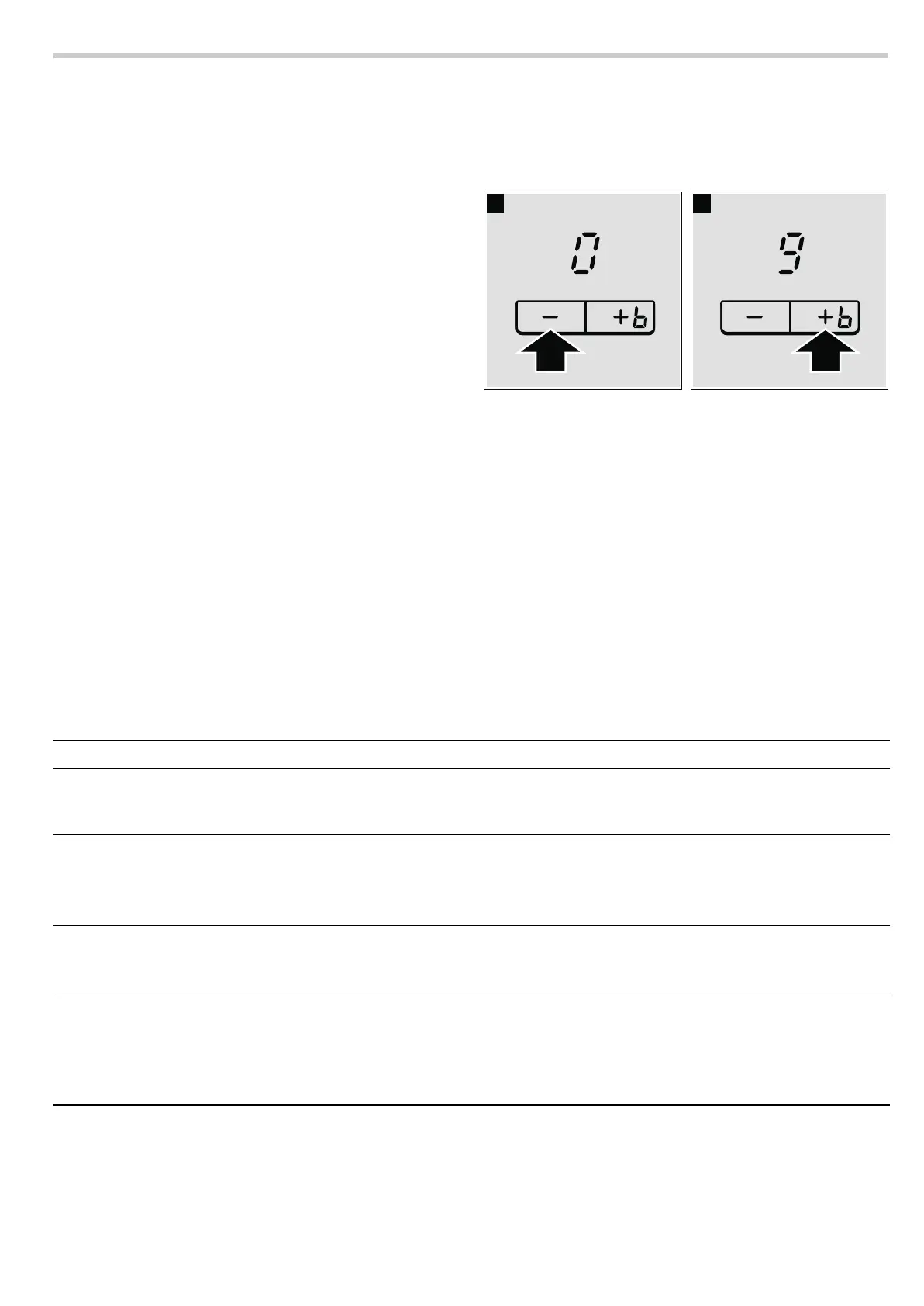 3.Kochstufe ändern: Auf das Symbol + oder - drücken, bis die