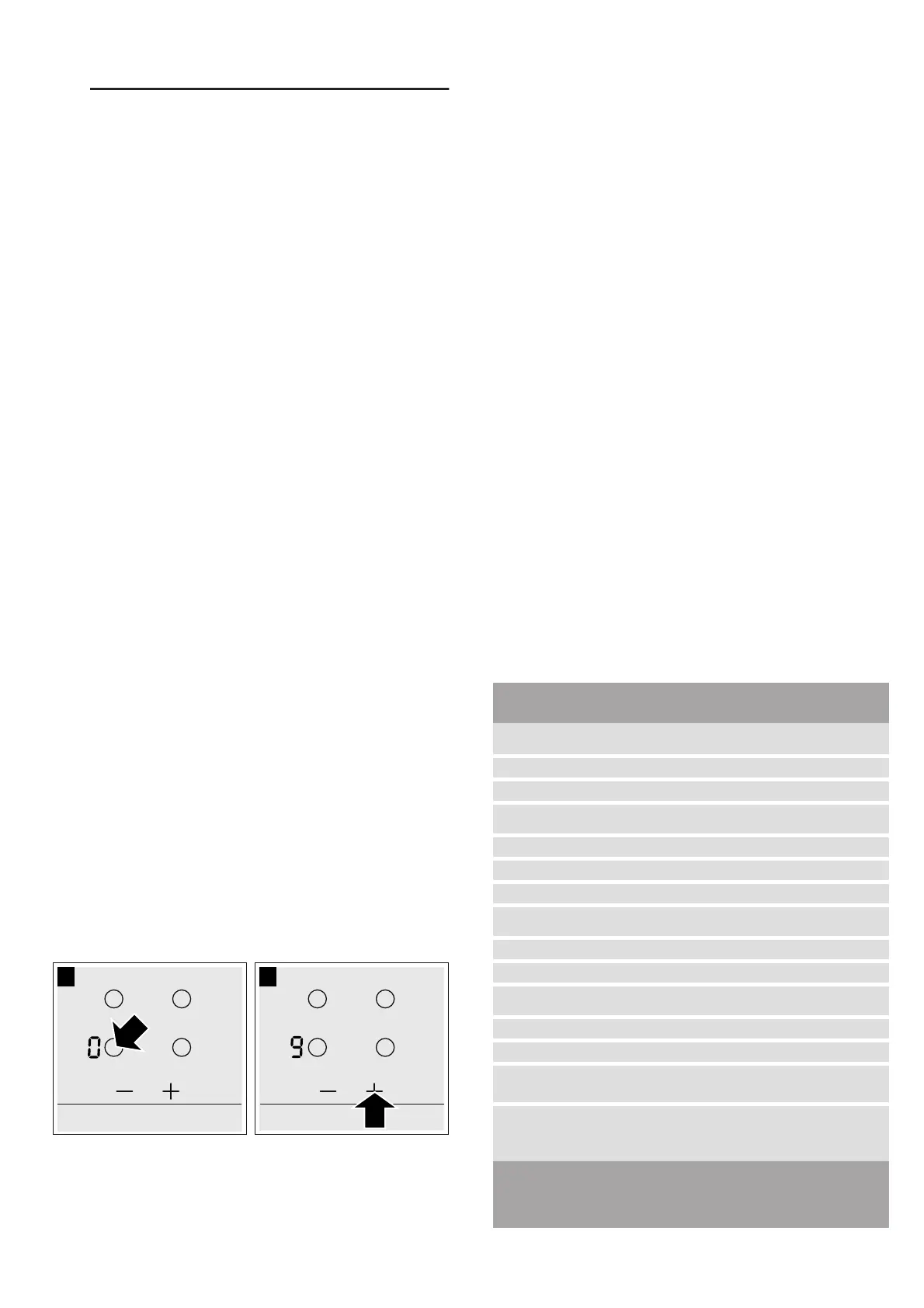 einstellen. In der Tabelle finden Sie Kochstufen und