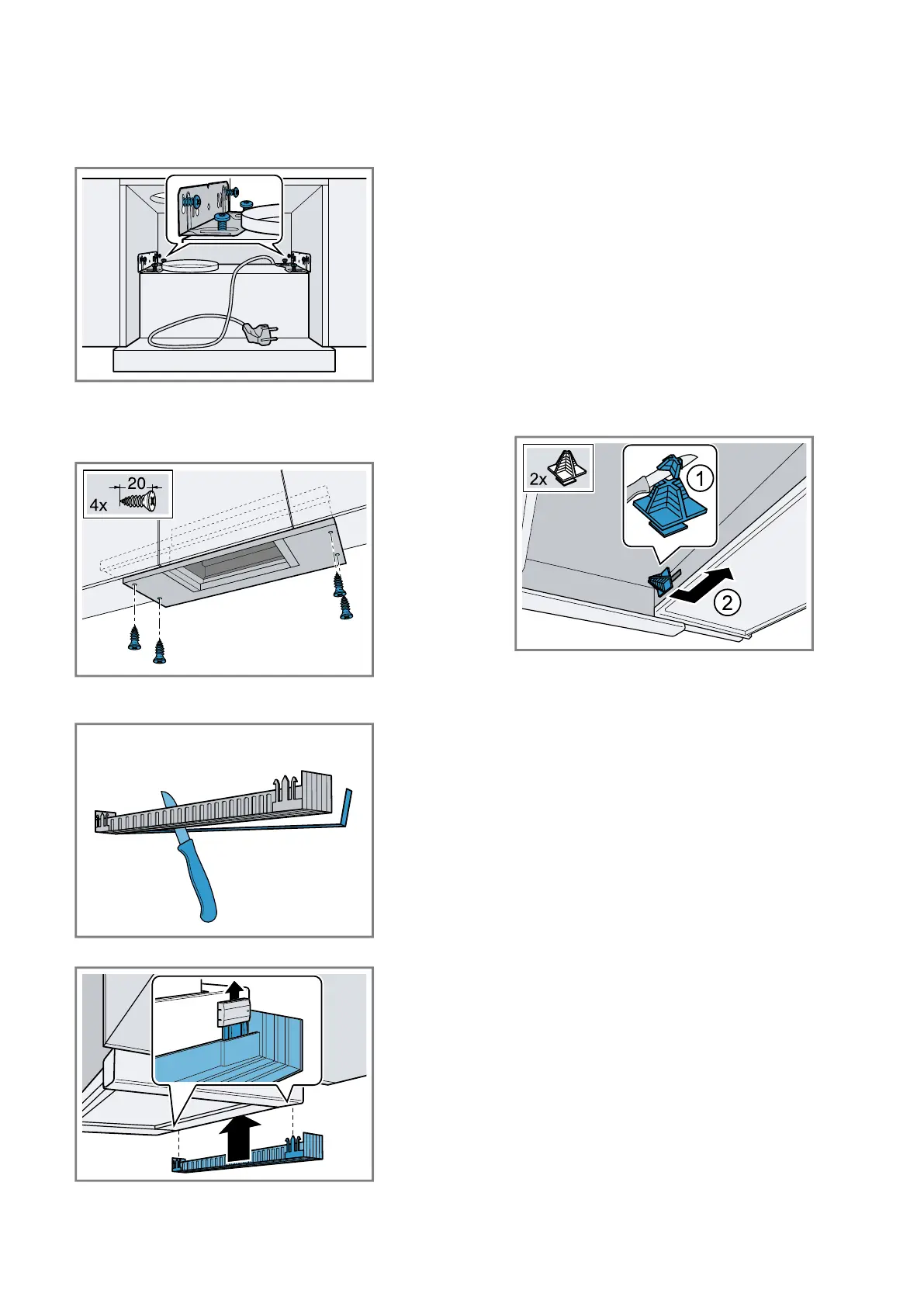 U kunt de behuizing van de afzuigkap in de bovenkast