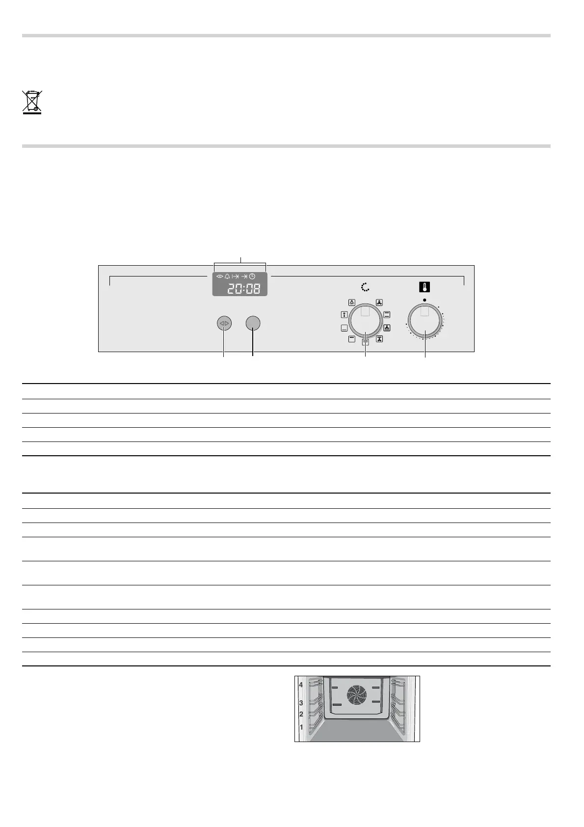 The cooking compartment has four shelf heights. The shelf