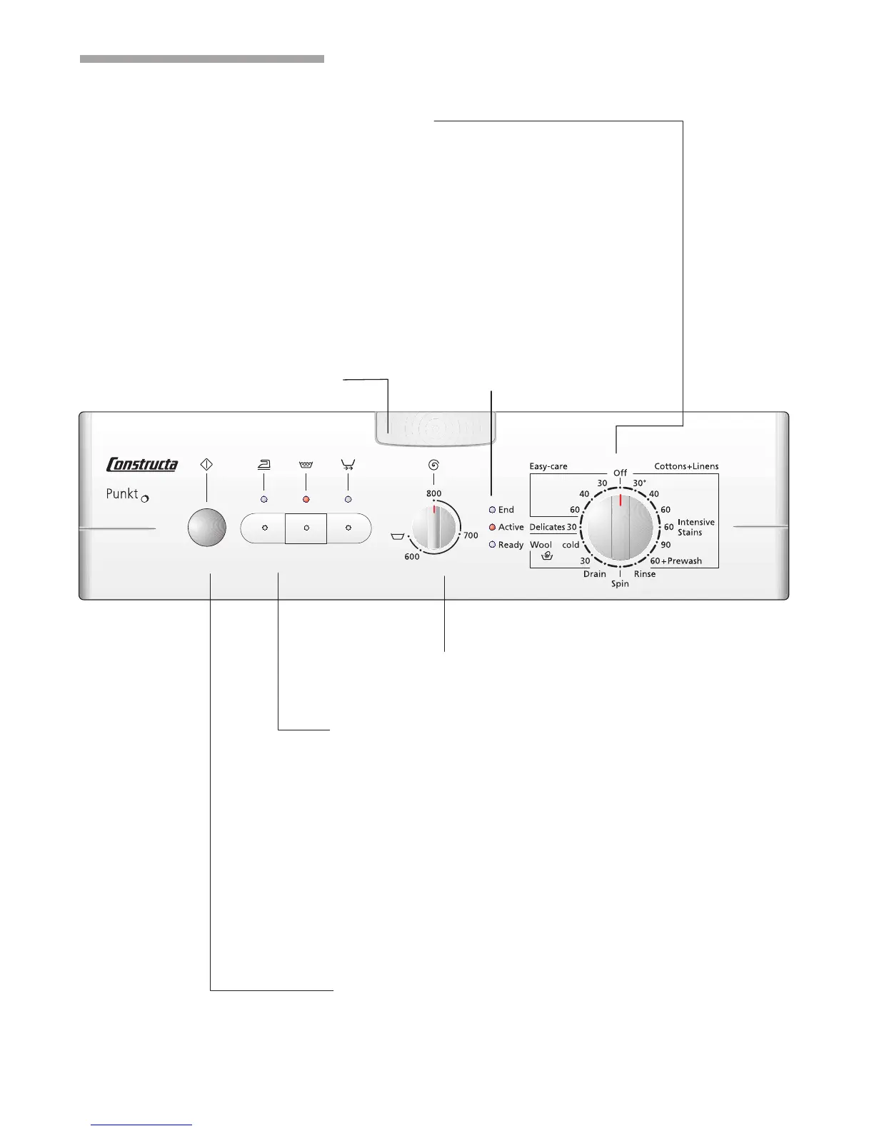 CONSTRUCTA Washing machine - Control Panel Operation; Programme Selection and Start; Additional Functions Overview