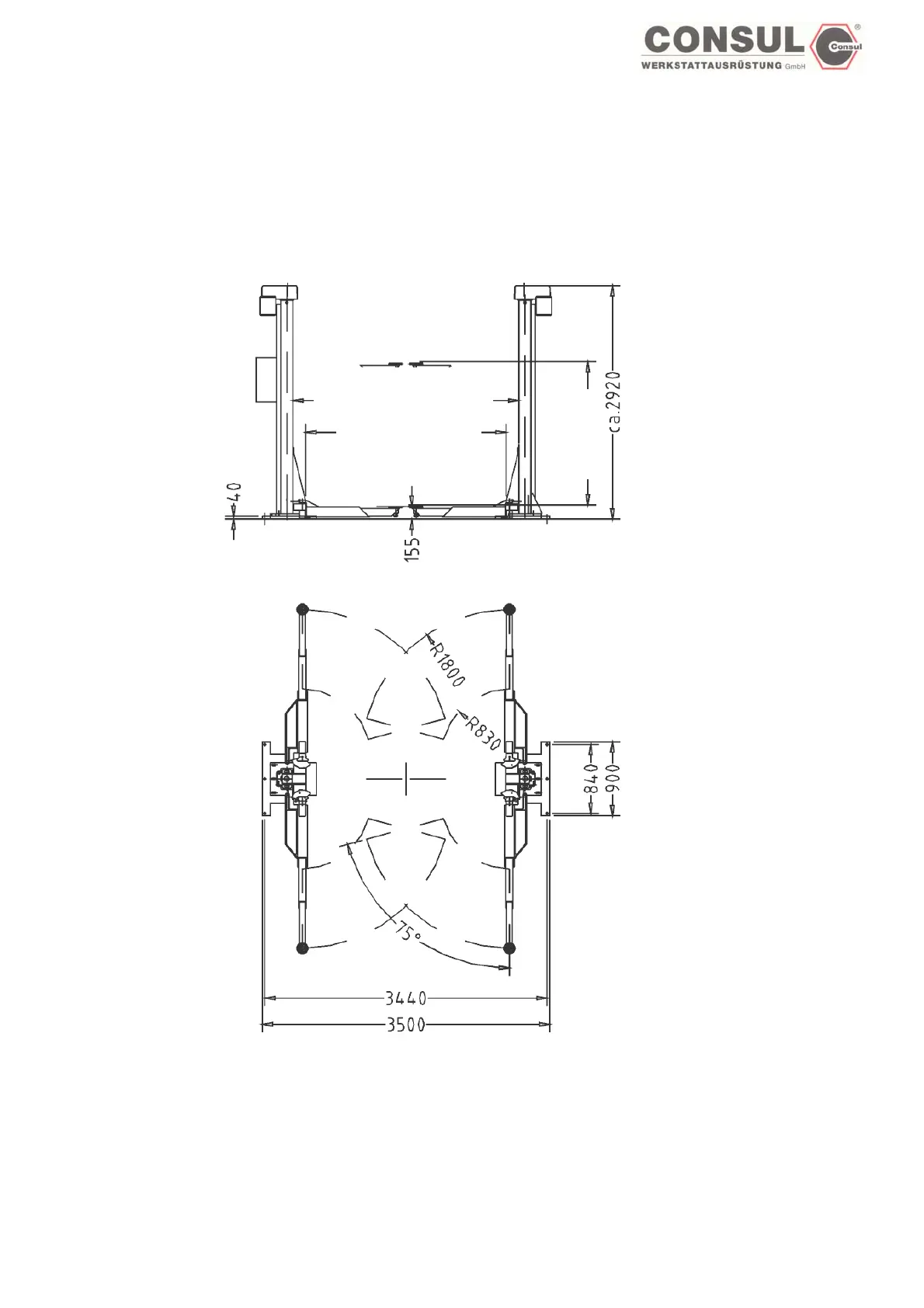 2-Post-Lift 2.60 Modula with symmetric swevel arms