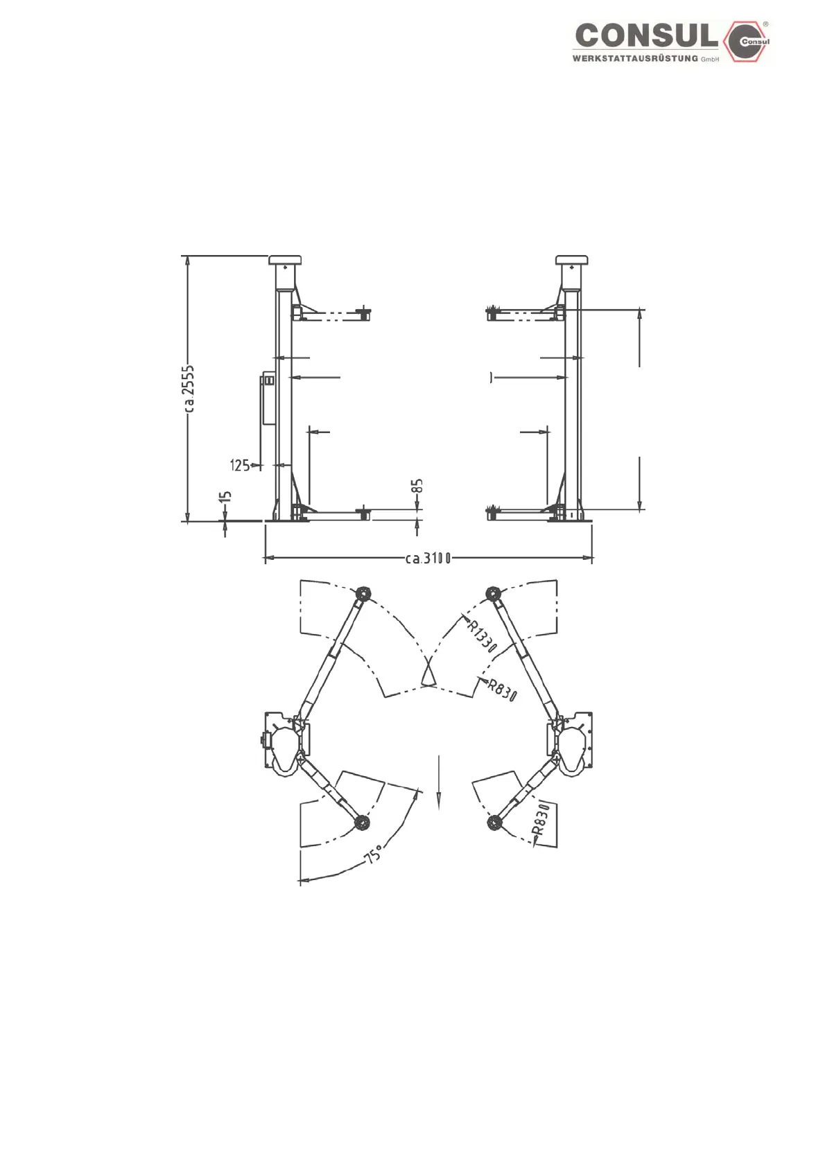 2-Post-Lift 2.30 Modula with asymmetric swivel arms