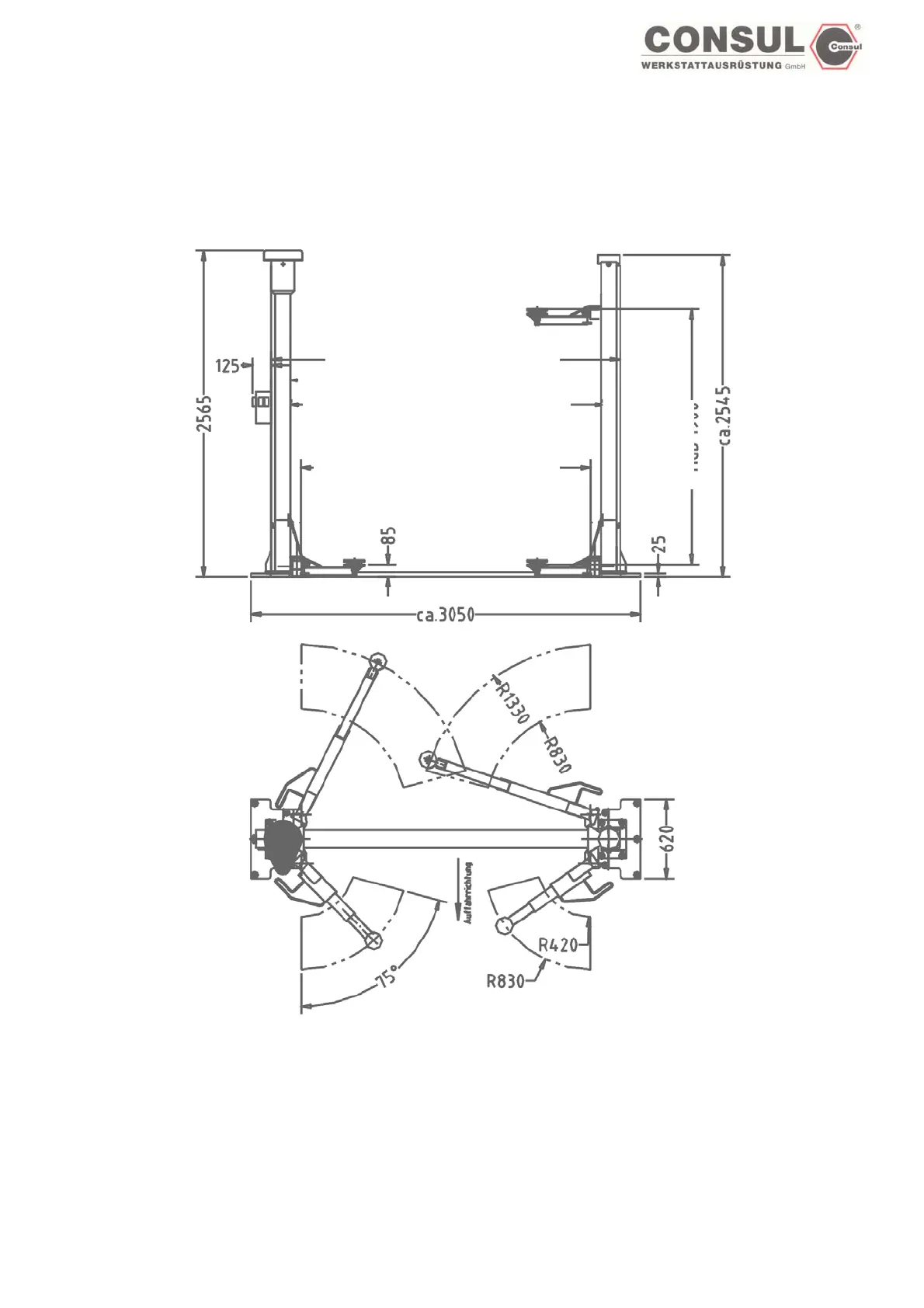 2-Post-Lift 2.30 Modula witht asymmetric swivel arms
