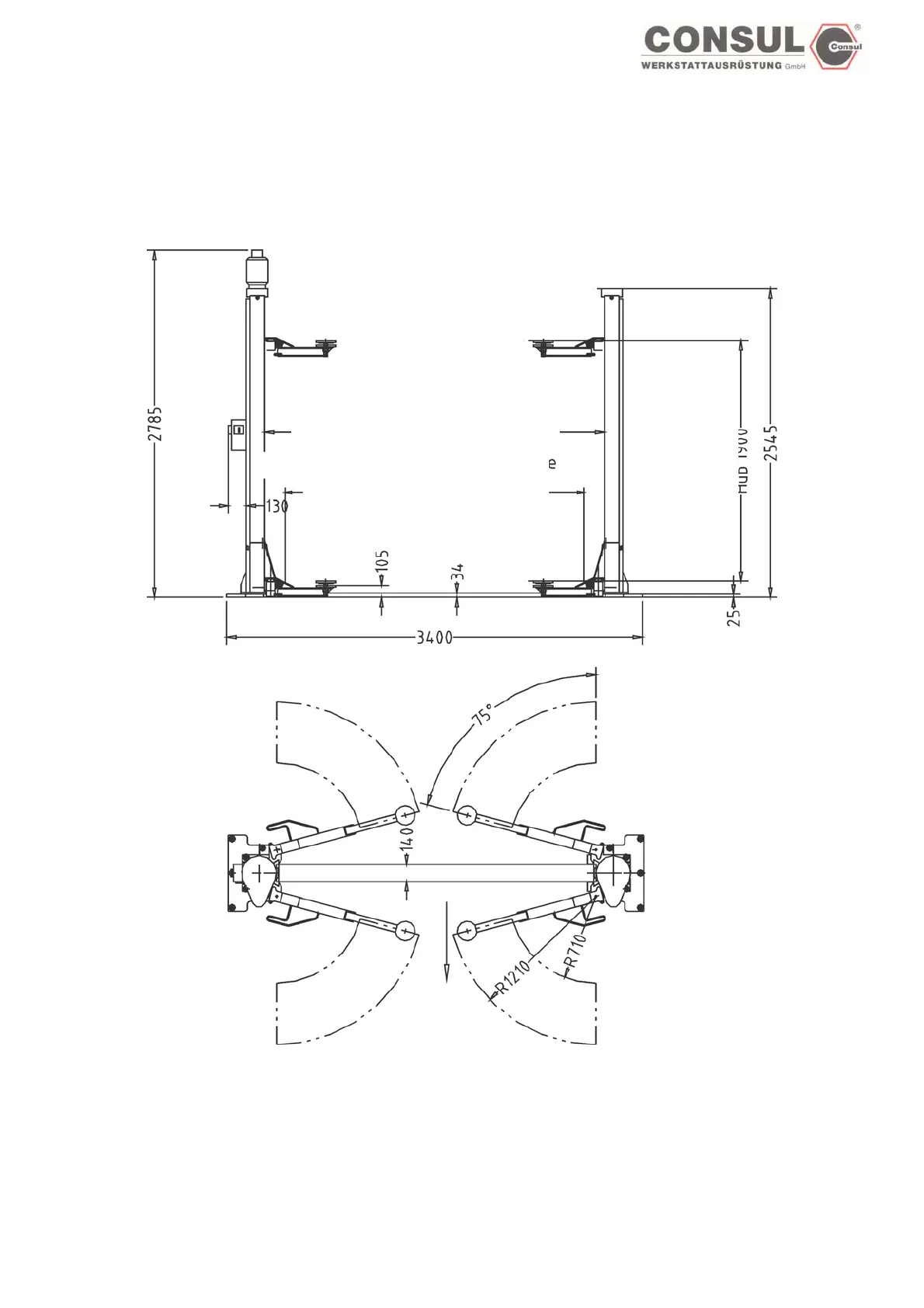 2-Post-Lift 2.35 Modul with symmetric swivel arms