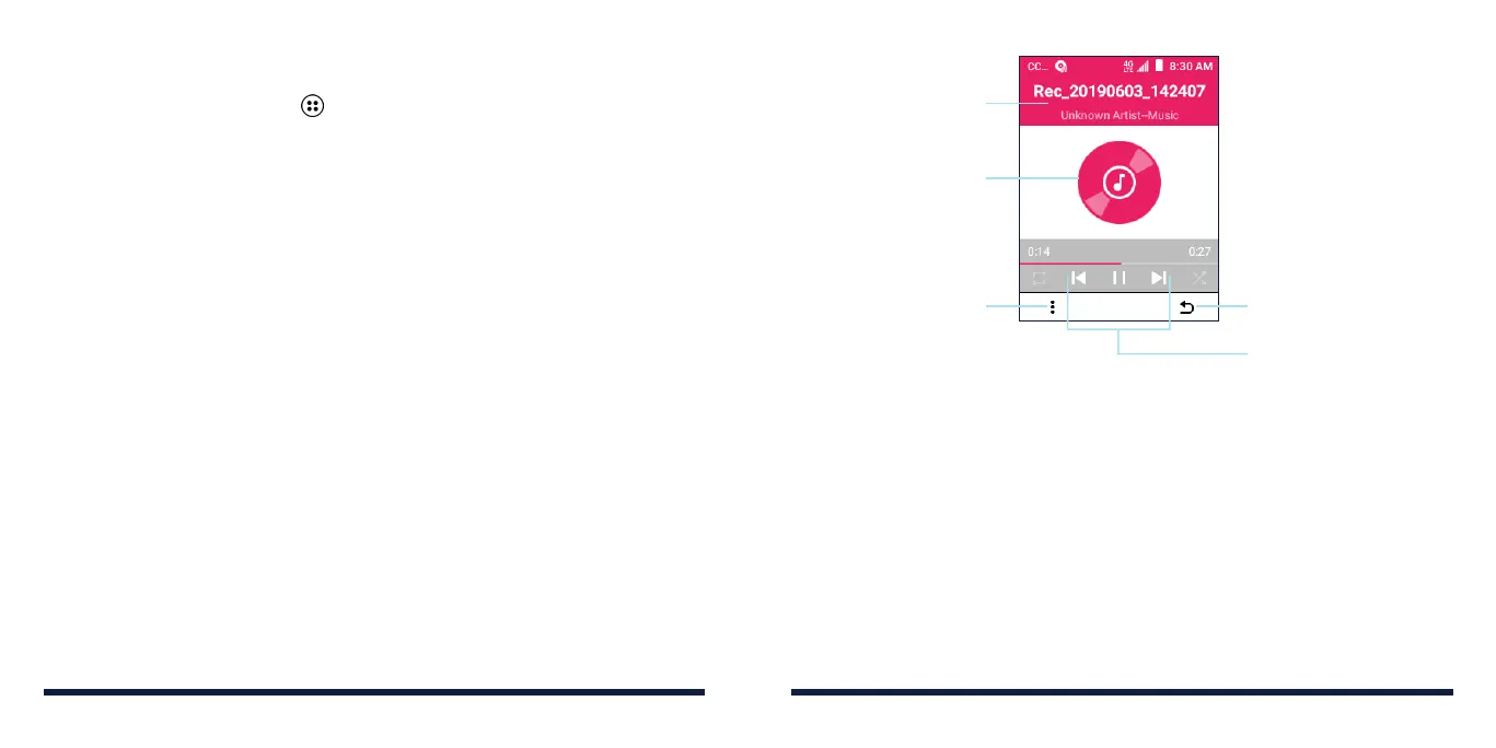 From the home screen, select > Multimedia > Music to play audio files