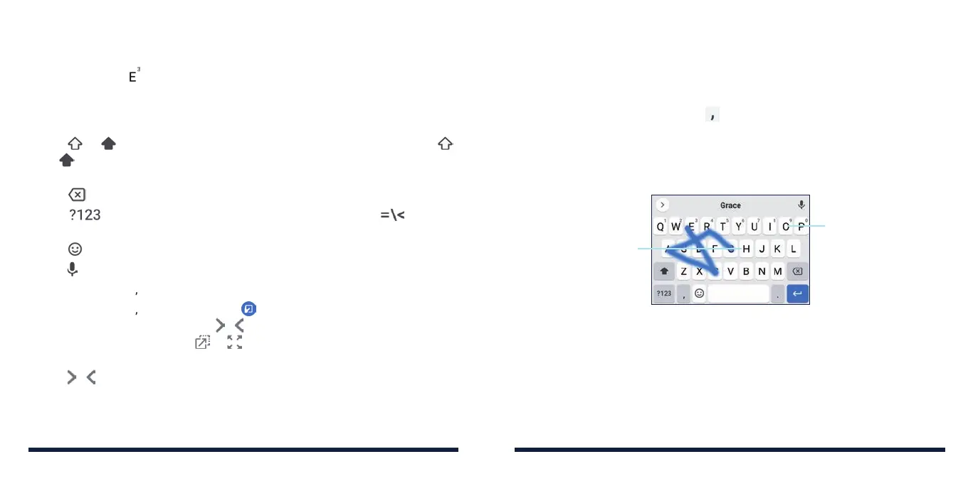 • Tap the alphabetic keys to enter letters. Press and hold some specific keys