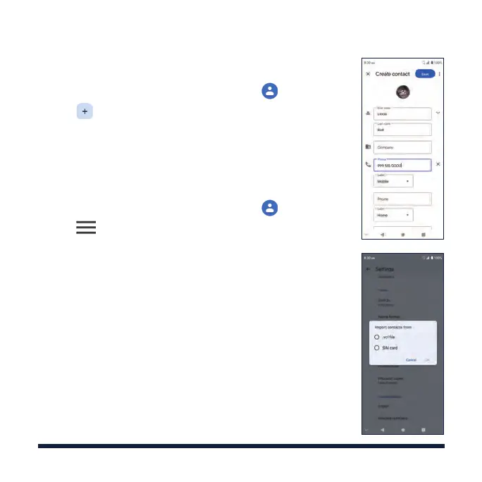 2. Tap > Settings > Import > .vcf file / SIM card >