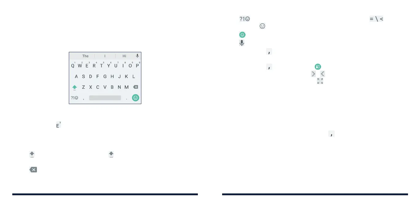 • Tap the alphabetic keys to enter letters. Press and hold some specific keys