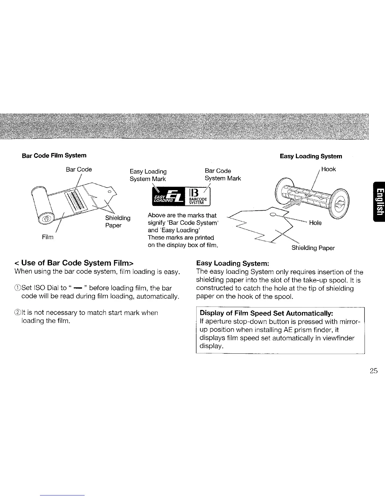 Contax 645 - Bar Code and Easy Loading Systems; Using Bar Code System Film; Easy Loading System Features
