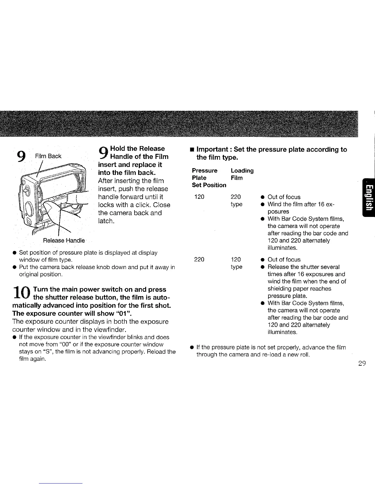 Contax 645 - Film Loading Settings; Film Type Pressure Plate Setting