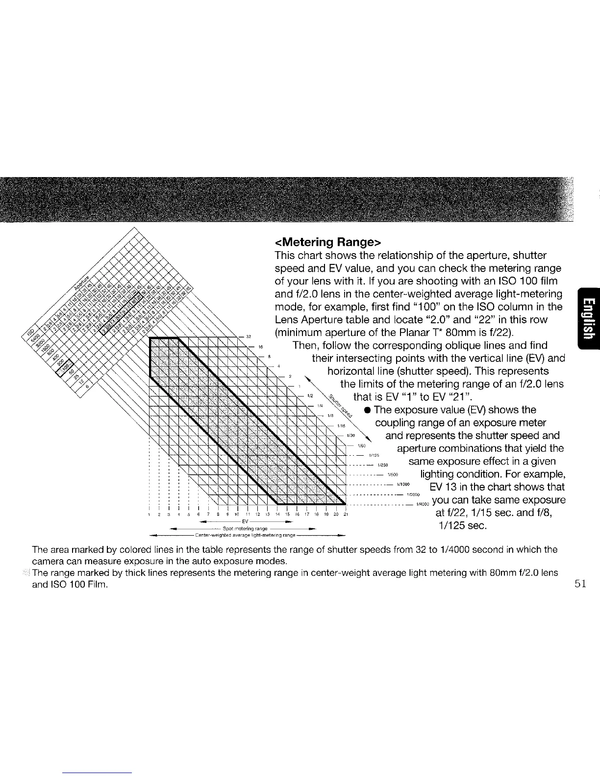 Contax 645 - Metering Range Chart; Metering Range Explanation