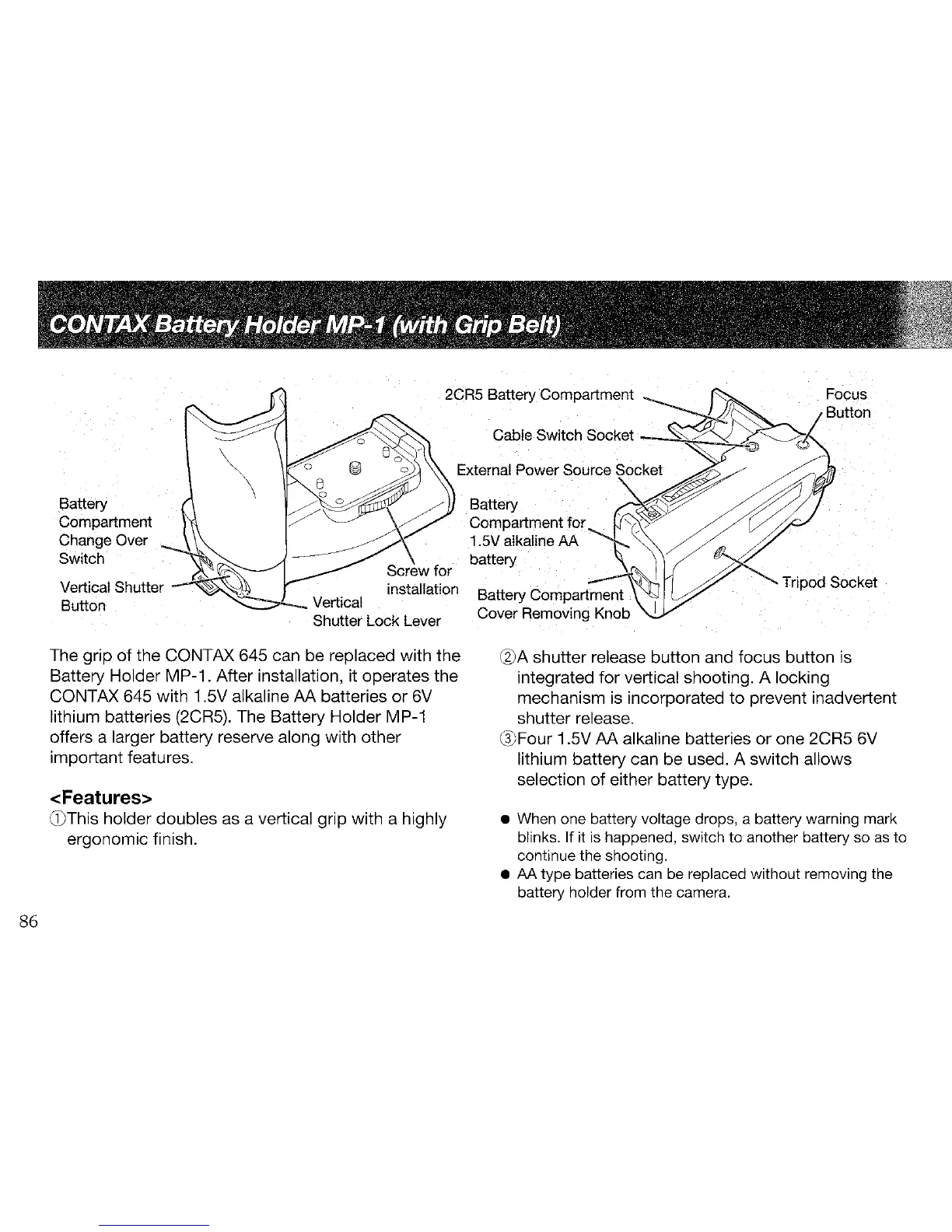 Contax 645 - CONTAX Battery Holder MP-1; Battery Holder Features