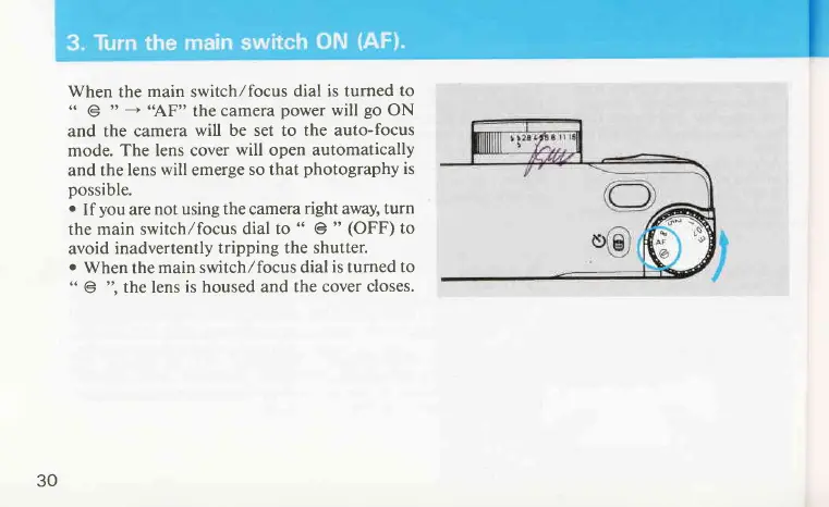 Contax T2 - Turn the Main Switch ON (AF)