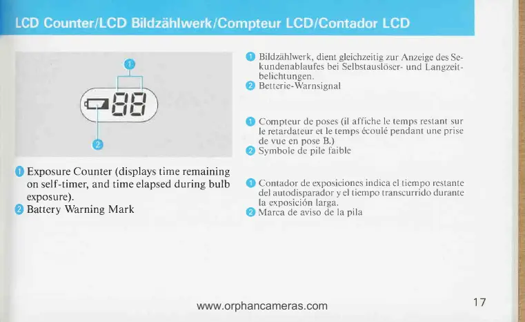 Contax T2 - LCD Counter Functions; Exposure Counter; Battery Warning Mark