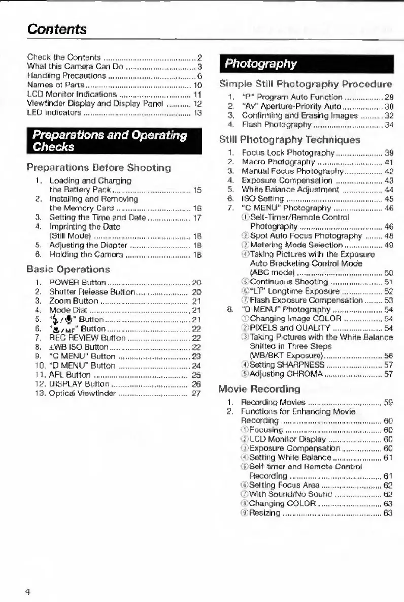 Contax TVS DIGITAL - Preparations and Operating Checks; Preparations Before Shooting; Basic Operations; Photography