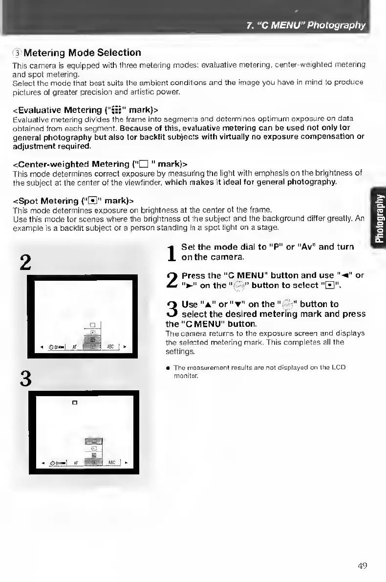 Contax TVS DIGITAL - C MENU Photography; Metering Mode Selection