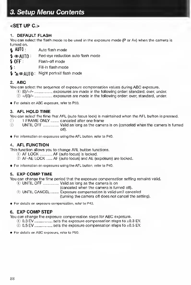 Contax TVS DIGITAL - Setup Menu Contents