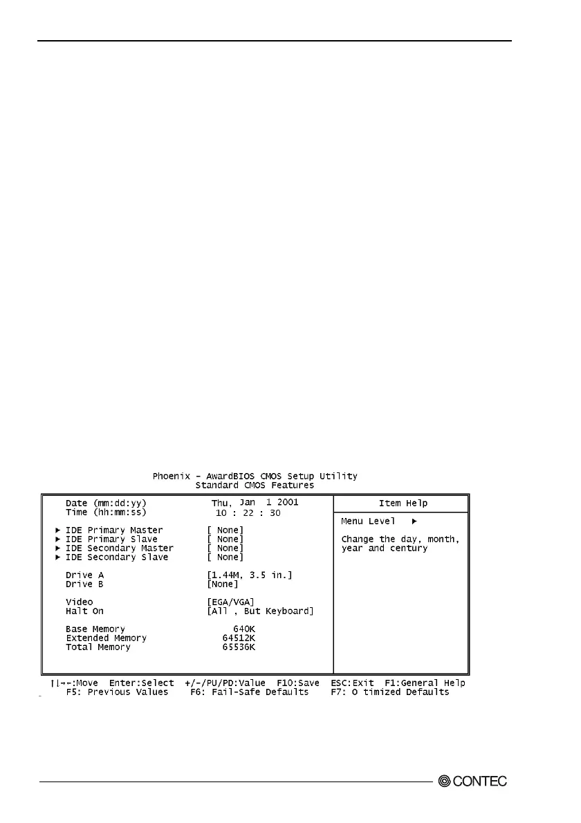 The items in Standard CMOS Setup Menu are divided into 10 categories. Each category includes no,