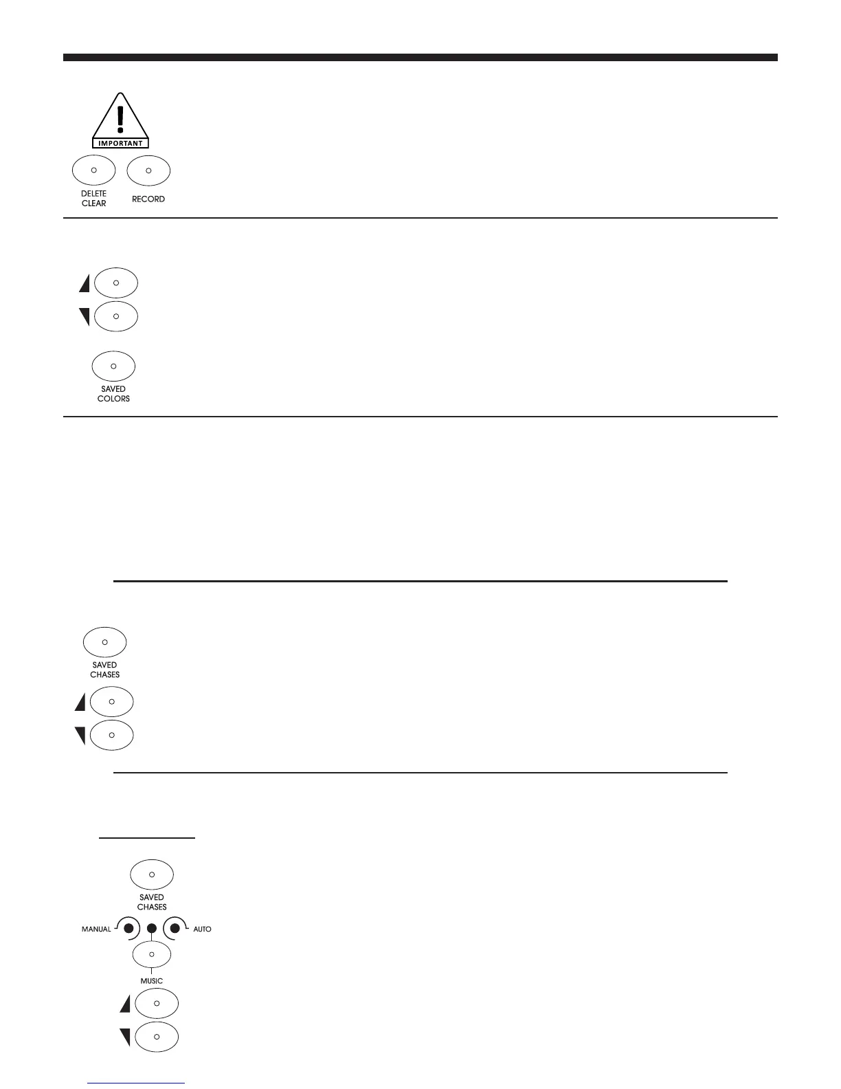 1 - Use the SAVED CHASES buttons to retrieve sequences. The corresponding LED will light up.