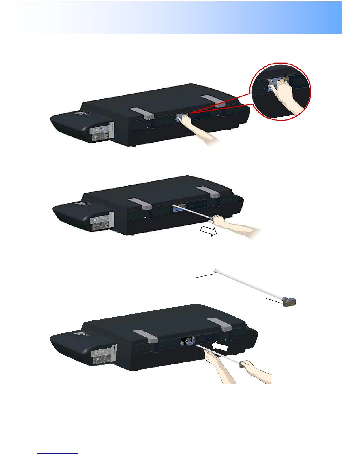 11. Reinsert the new lamp-unit. Support the unit with both hands. Take care to insert at the right angle.