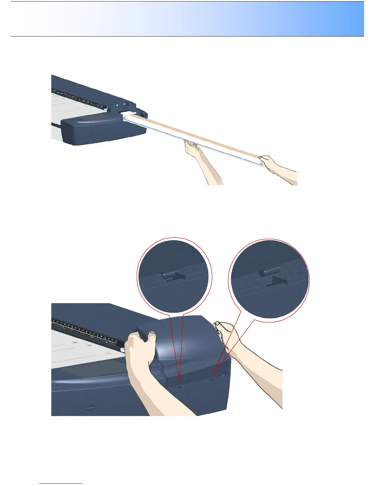 9. Replace the lamp cover on the scanner - fit the bottom notches in the holes and snap the cover shut.