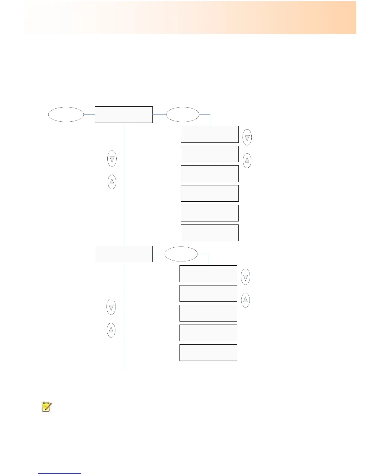Note that there are two menu rows in the display window: 1 Options row 2. Value row. Note that the “>” marker is