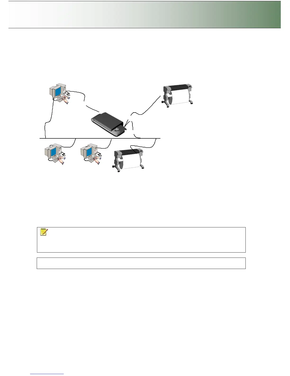 In the example illustrated above, we have connected both a printer and a PC directly to the scanner and